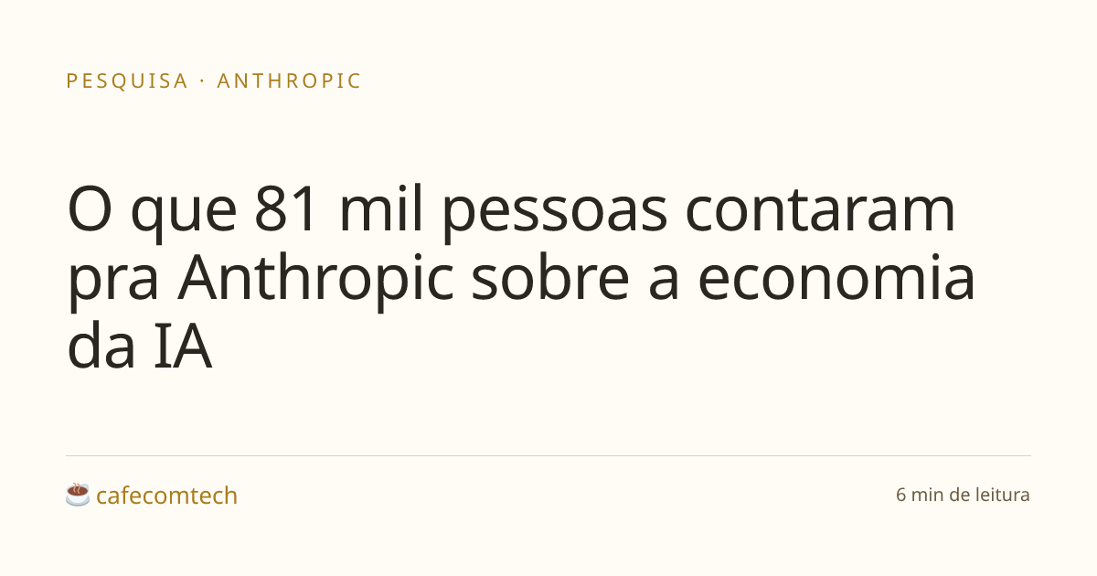 A Anthropic entrevistou 81 mil usuários do Claude pra entender como a IA tá mexendo com trabalho e renda. Quem atua em funções mais expostas à IA tem mais medo de perder emprego, e o receio é maior entre quem tá começando carreira. Os maiores ganhos de produtividade aparecem nos extremos: profissões bem pagas e mal pagas. Quem sente mais aceleração no trabalho também é quem mais teme substituição.