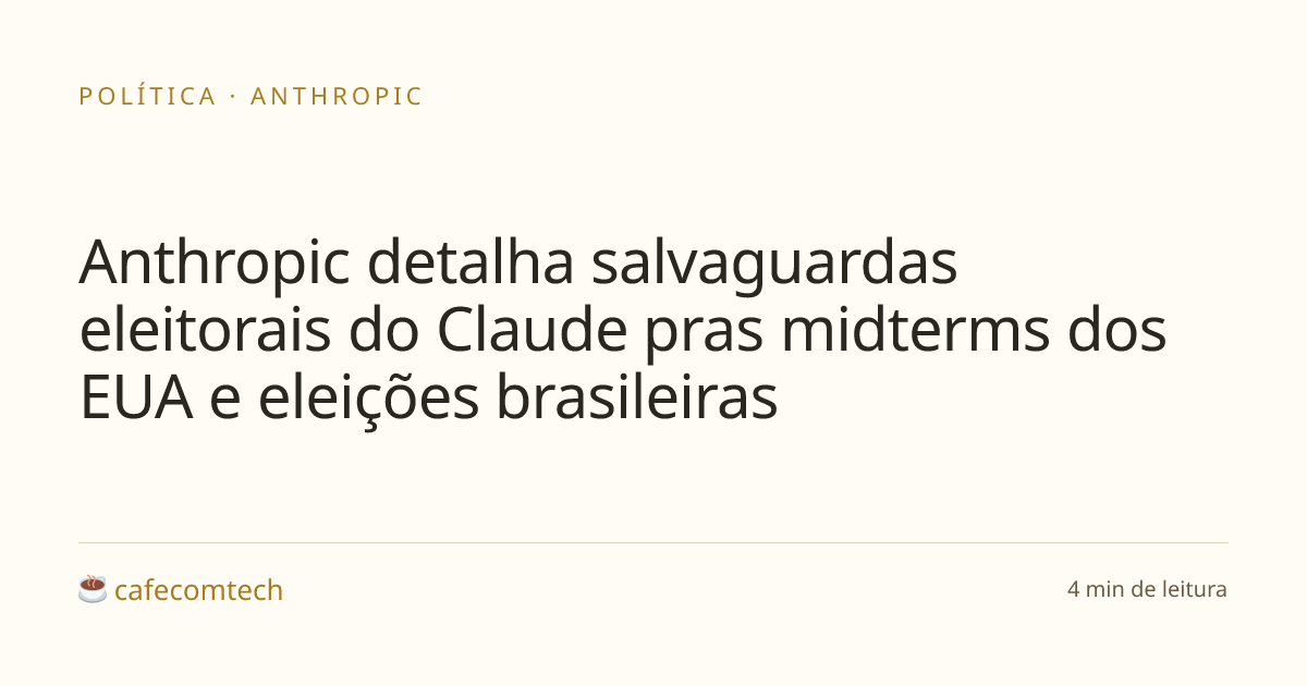 Anthropic citando Brasil explicitamente em policy global de eleição é raro. A escolha do parceiro brasileiro pro banner eleitoral vai dizer muito sobre como a empresa enxerga checagem de fato no país. Fica de olho.