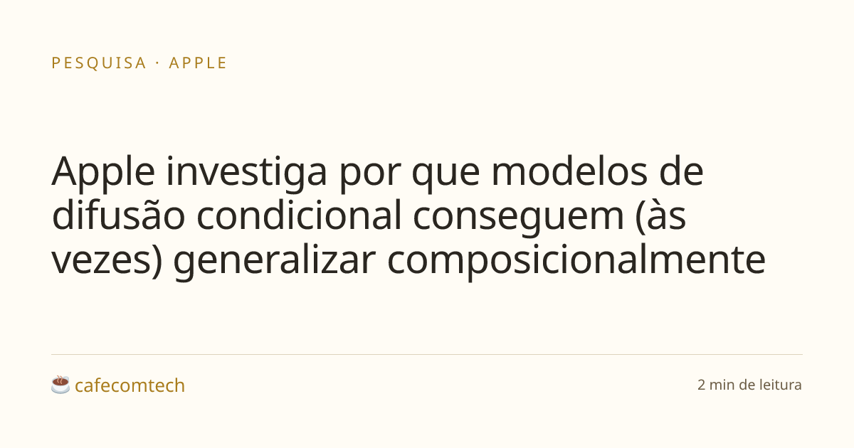 O problema: modelos de difusão condicional parecem capazes de generalização composicional (gerar amostras convincentes pra combinações de condicionadores fora da distribuição de treino), mas ninguém sabe direito por quê. O paper ataca isso de frente.