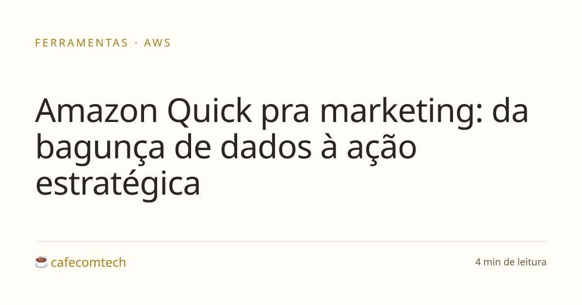 A AWS publicou um post detalhando como o Amazon Quick se encaixa no fluxo de times de marketing. A proposta central: parar de mover dados manualmente entre ferramentas e deixar o Quick montar um grafo de conhecimento pessoal que entende prioridades, preferências e rede de contatos de quem usa.