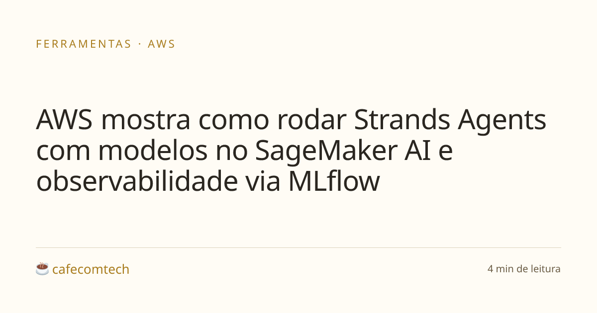A AWS publicou um tutorial mostrando como montar agentes de IA com o Strands Agents SDK rodando em cima de modelos hospedados em endpoints do Amazon SageMaker AI, com observabilidade via SageMaker Serverless MLflow. O alvo é claro: empresa que quer controle de infra (compute, rede, scaling, residência de dados) e não se contenta com o que FM (foundation model) gerenciado tipo Bedrock entrega de fábrica.