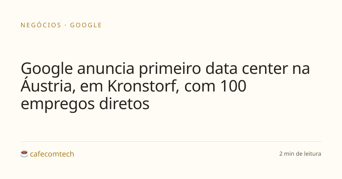 A Google anunciou o primeiro data center da empresa em território austríaco, em Kronstorf, com 100 empregos diretos. A ideia é atender a demanda crescente por serviços digitais e capacidade de IA da Google na região, e o projeto entra na conta do investimento contínuo em infraestrutura digital pela Europa.