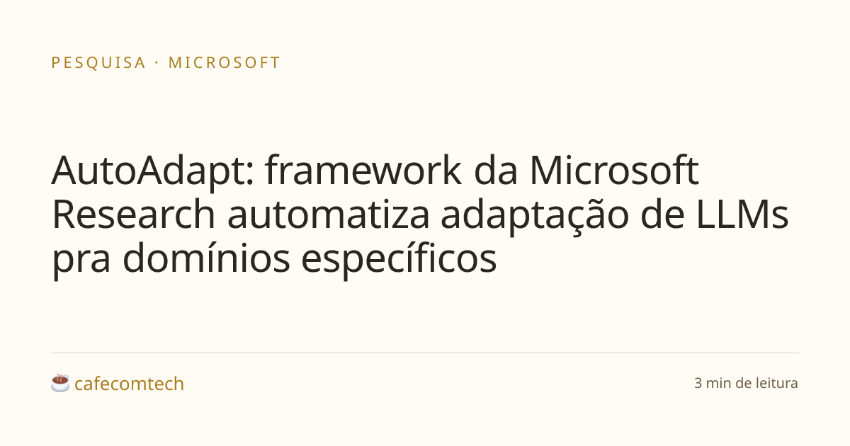 A Microsoft Research publicou o AutoAdapt, framework que ataca um problema chato pra quem coloca LLM em produção em área sensível: adaptar modelo genérico pra domínio específico hoje é lento, caro e praticamente impossível de reproduzir.