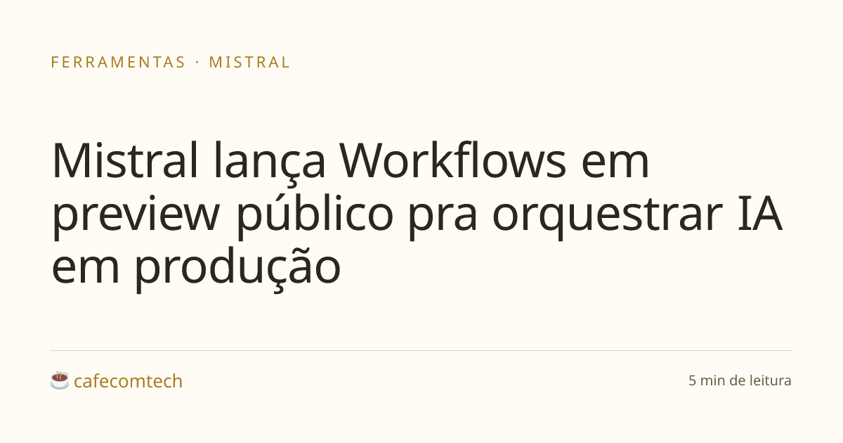 A Mistral colocou em preview público o Workflows, camada de orquestração pra IA empresarial dentro do Studio. Promete durabilidade, observabilidade e tolerância a falha pra tirar processo com IA do notebook e levar pra produção. Roda em cima do Temporal, com SDK Python, pausa pra aprovação humana em uma linha de código e clientes como ASML, ABANCA, CMA-CGM e La Banque Postale já em uso.