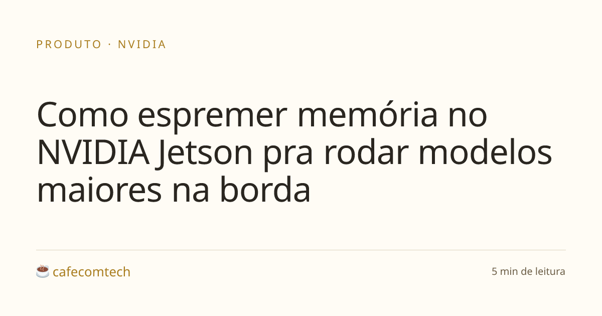 A NVIDIA publicou um guia do time do Jetson (Anshuman Bhat e Aditya Sahu) mapeando 5 camadas de otimização de memória. Ganho total possível: 10 a 12 GB de RAM recuperada, mantendo precisão e features.