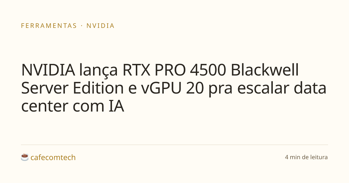 Lançamento técnico denso, mas o recado é claro: NVIDIA quer que todo data center corporativo vire AI-ready via virtualização, sem exigir rack novo. Pra time de infra BR que roda VMware com A-series ou L4, vale rodar benchmark antes de aprovar orçamento 2026.