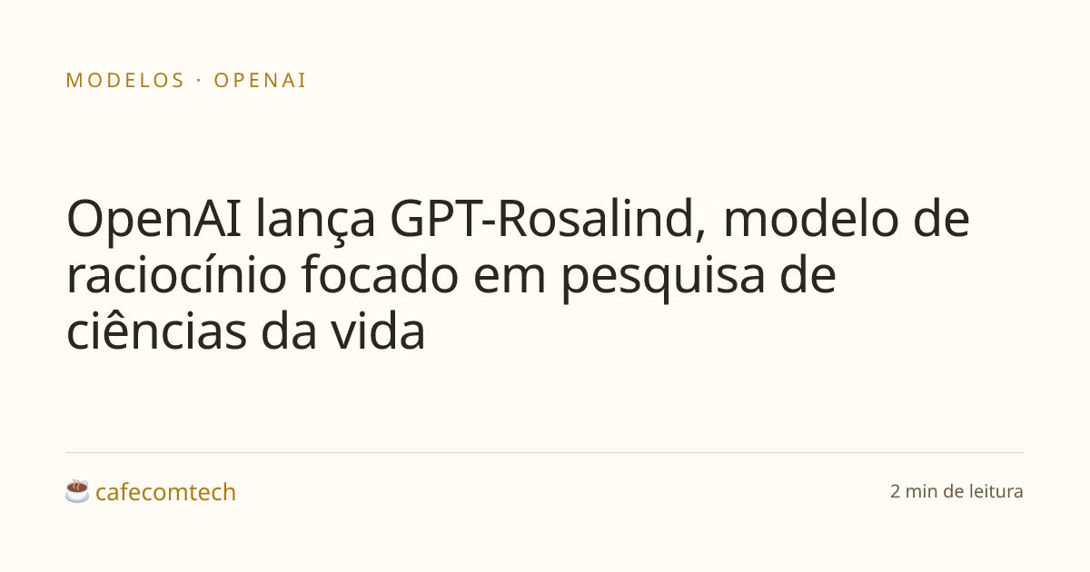 A OpenAI lançou o GPT-Rosalind, um modelo de raciocínio avançado desenvolvido para acelerar descoberta de fármacos, análise genômica, raciocínio sobre proteínas e fluxos de trabalho científicos. O modelo traz capacidades de reasoning aprimoradas para pesquisadores na área de ciências da vida.